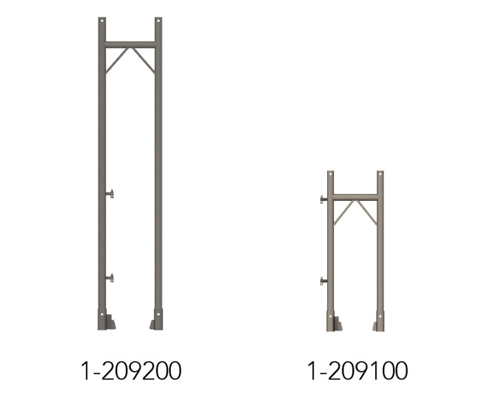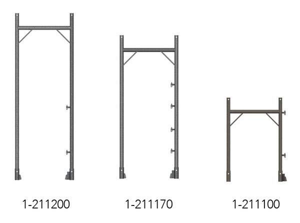 MATO 1 iskele çerçeveleri 70 cm ve 100 cm genişliklerde mevcuttur. İnşaat yüksekliğine ve maksimum yüke bağlı olarak, 2,7 mm et kalınlığına sahip çelik çerçeveler veya 4 mm kalınlığa sahip alüminyum çerçeveler kullanılır. Özellikle ağır yükler için, standart hafif çerçeveyle tamamen uyumlu olan 3,25 mm et kalınlığına sahip çelik çerçeveler mevcuttur.
