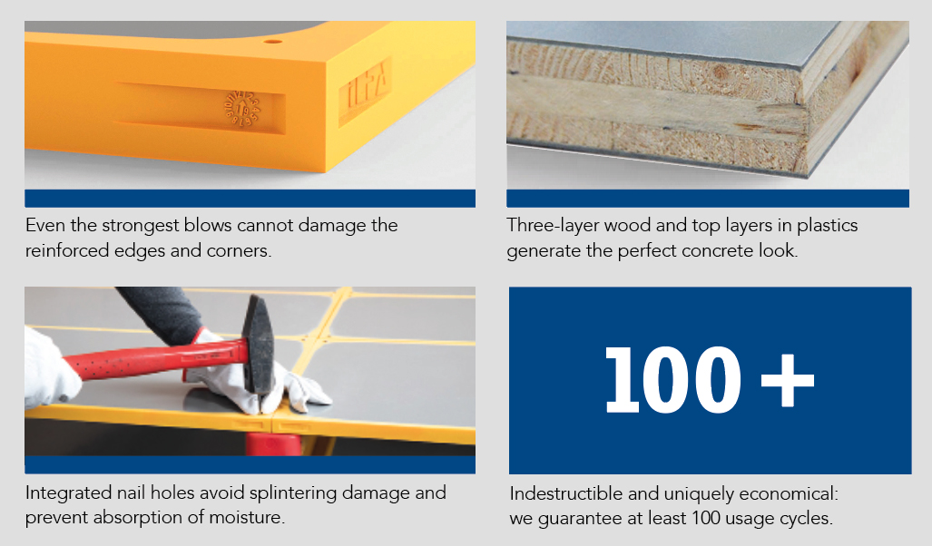 Tobler Longlife Panel ile konstrüksiyonun geleceğini deneyimleyin. Yenilikçi kalıp paneli, çepeçevre poliüretan kenar korumasına sahiptir. Ne düşüşler ne de ağır darbeler panele zarar verebilir.